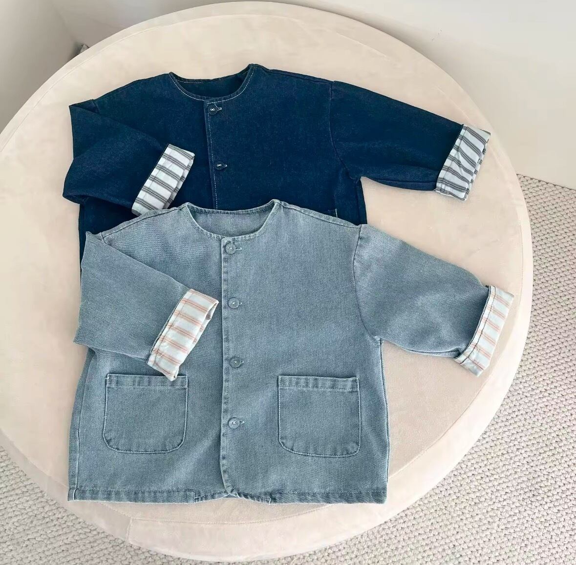 ■■デザインのポイント ストラップ柄の裏地が個性的で、着るたびに楽しさを感じさせます。袖をめくることで、より軽やかな印象に変身できるのも嬉しいポイントです!デニム素材の丈夫さと、さりげないデザインが相まって、どんなシーンでも活躍します! デニムジャケットをプラスして、あなたのファッションに新しい息吹を取り入れ、自分だけのスタイルを楽しみましょう!
