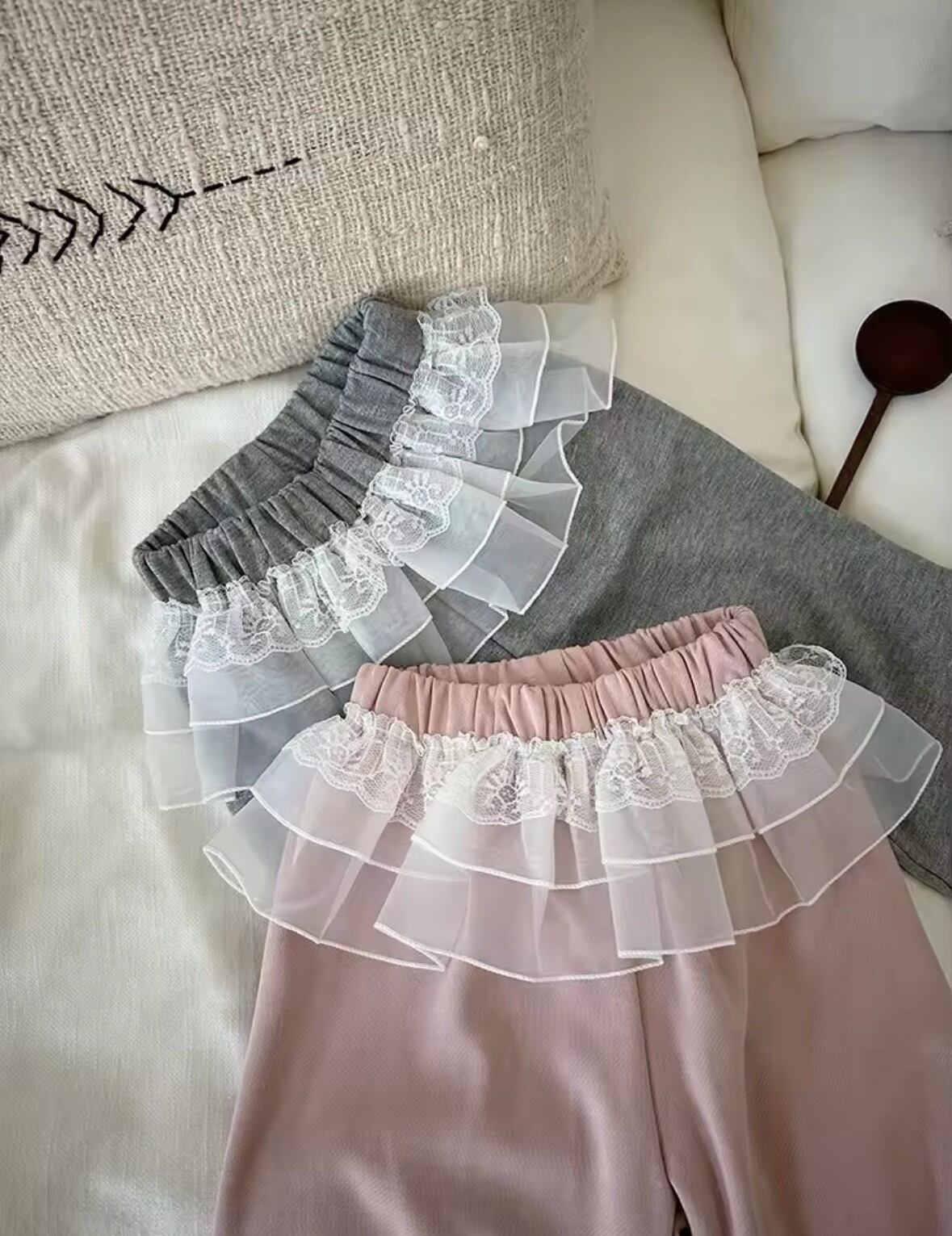 おしゃれなフリルが特徴のレーススウェットパンツです!抜け感がありつつも可愛く着こなせるアイテムで、カジュアルな日常コーデに大活躍します。